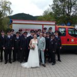 Im Anschluss an den Gottesdienst erwartete das frisch vermählte Paar zunächst ein Spalier der Bollenbacher Ruhmattenschimmel, wo das Brautpaar aktiv und der Bräutigam Vorstand ist. Dem schloss sich das Spalier der Feuerwehr an. Lisa Kinnast ist bei der Feuerwehr Hofstetten aktiv und dort auch als Schriftführerin tätig, Manuel Kinnast ist bei der Abteilung Bollenbach aktiv.